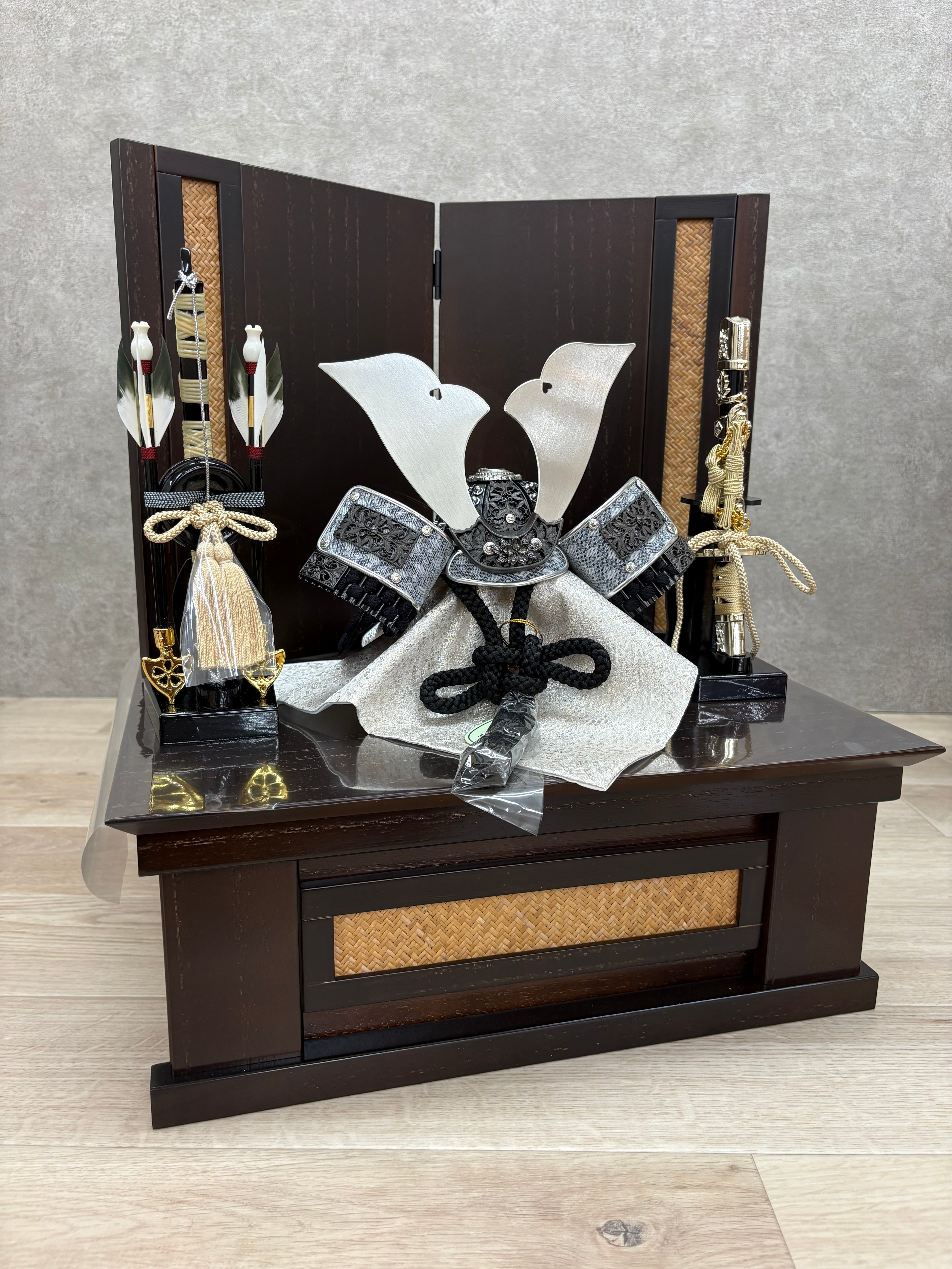 ウッディなデザインの箱が「我が家に馴染みそう」と、とても人気のおしゃれな五月人形です。