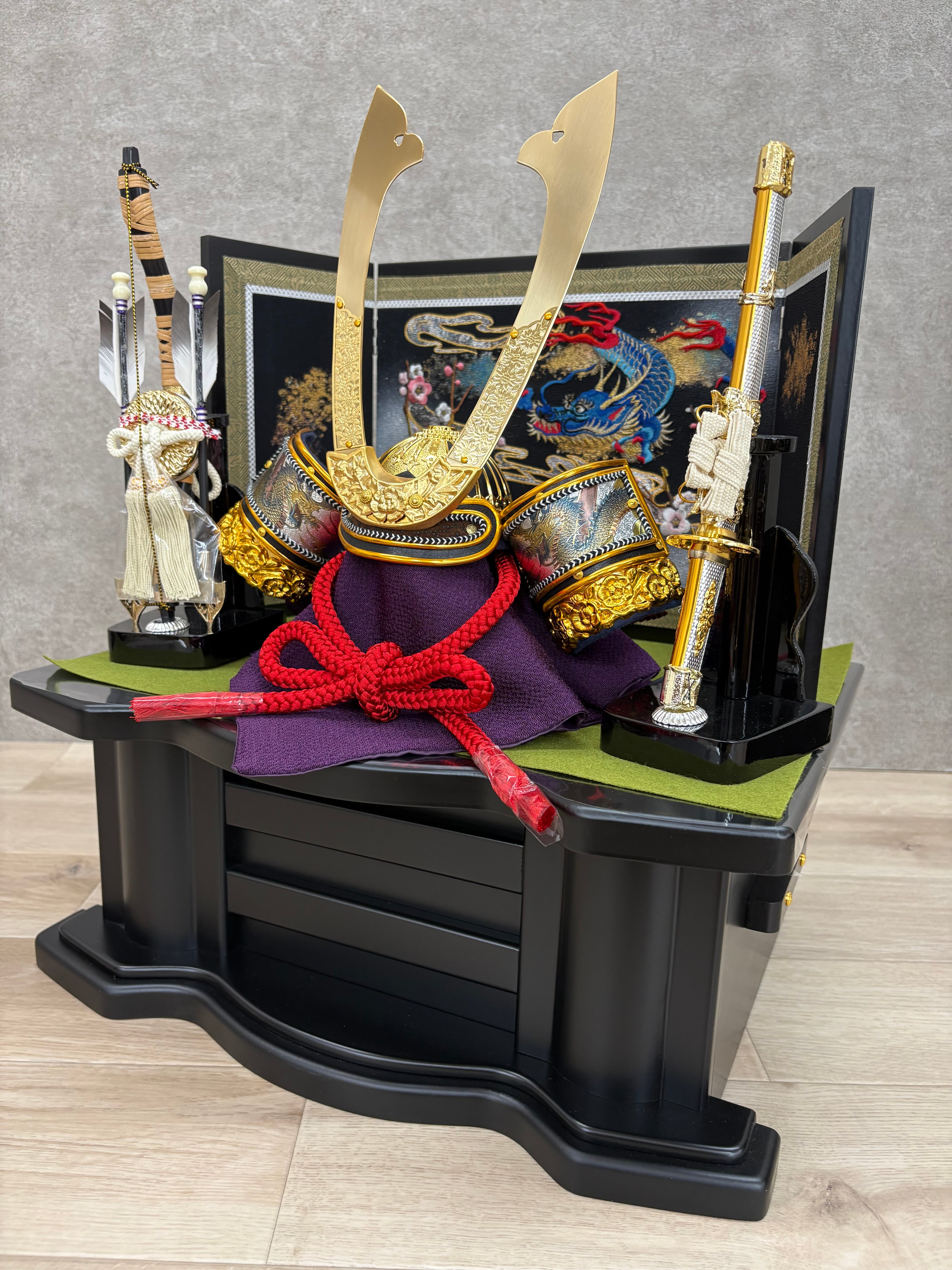下の飾り台の中に兜などを片付ける事が出来