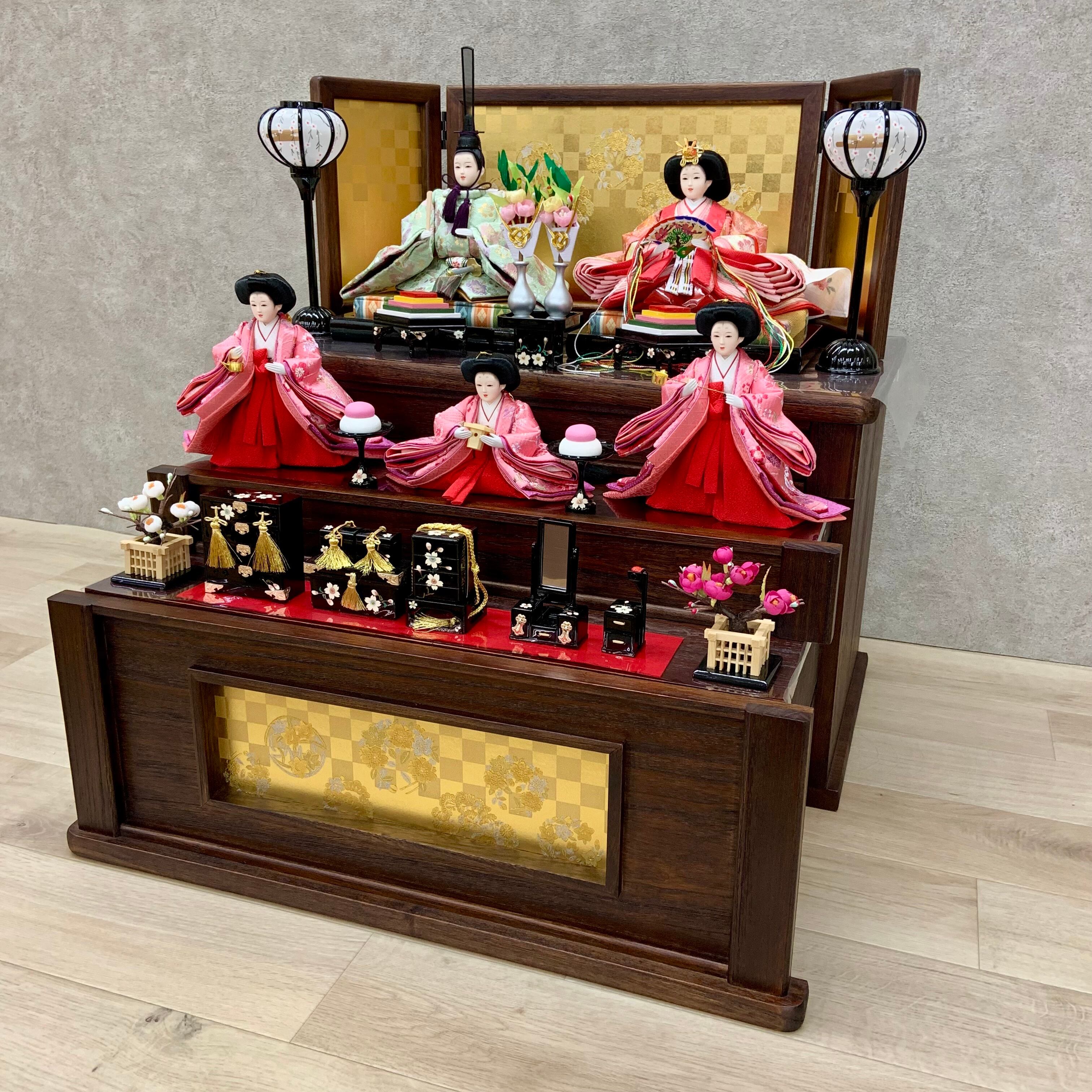飾り箱は、お人形をしっかりと収納できる機能性があり、使用しない時はスッキリと片付けられるため、スペースも有効活用できます。