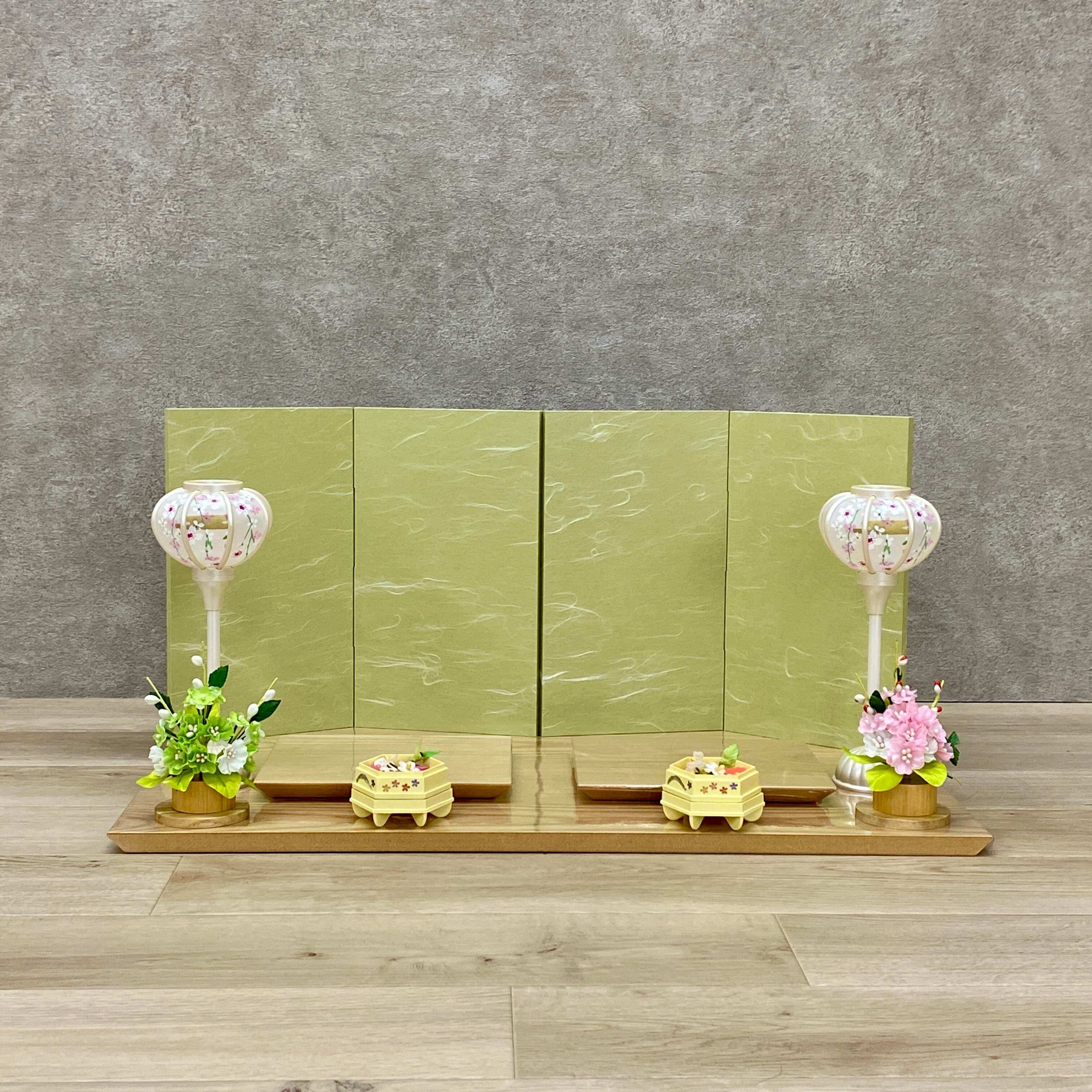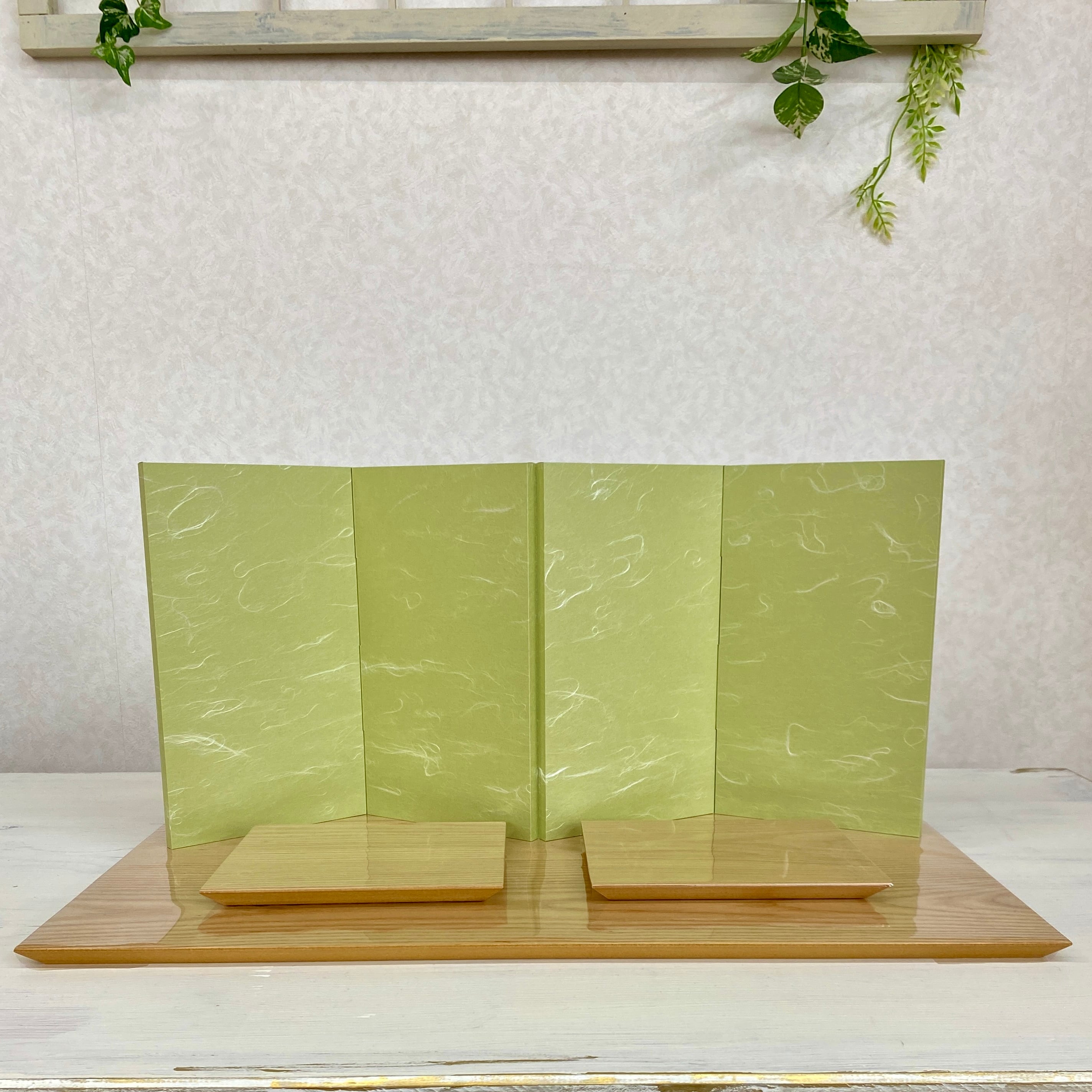 屏風の色合いは全体に穏やかさを与えつつ、 丁寧に作り込まれたお顔立ちは、愛らしく、家族の幸福な瞬間をそっと見守ってくれることでしょう。
