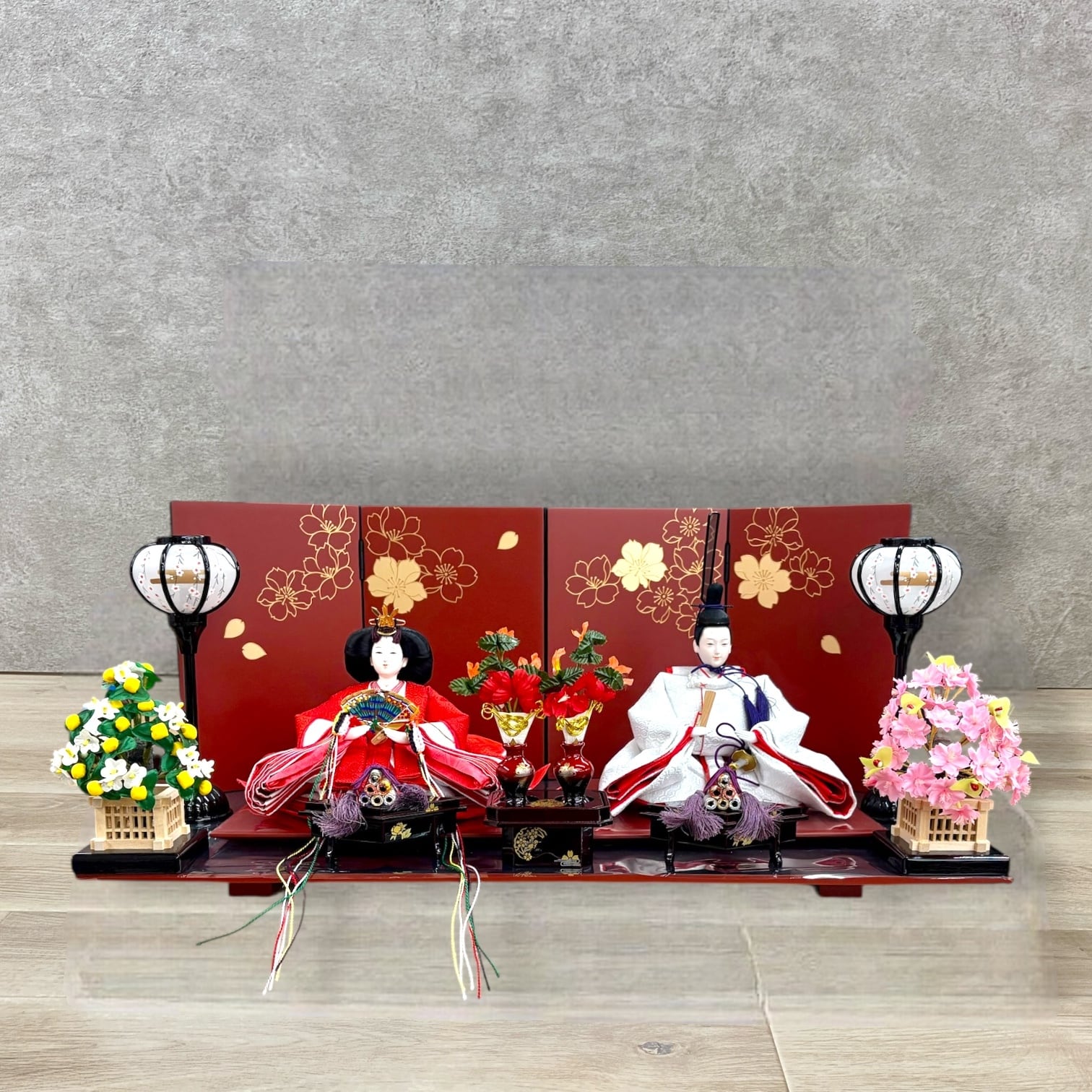 H14 親王飾 さくら屏風 エンジ塗