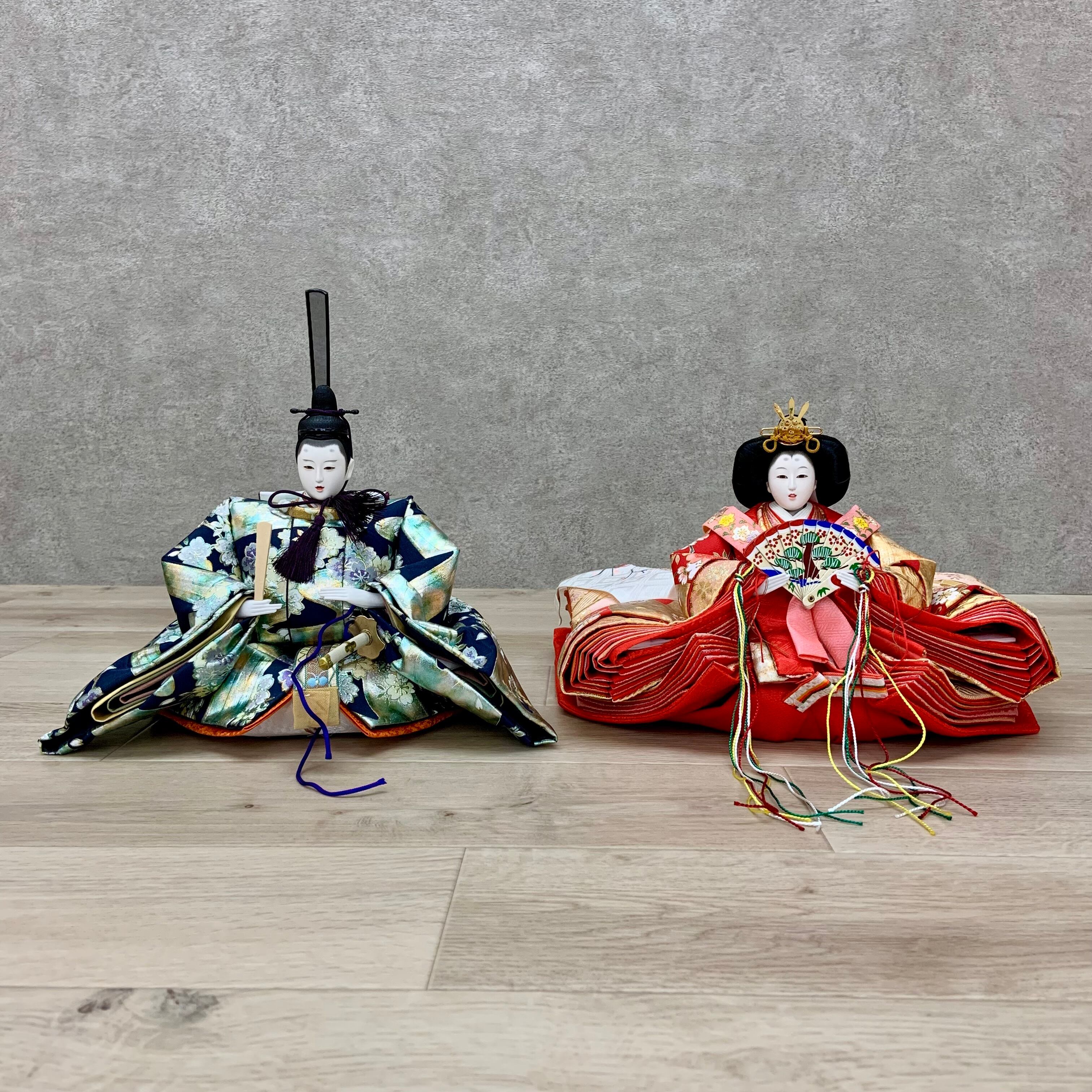 こちらの親王飾は、伝統的な和の美しさを表現しています。丁寧に塗られた黒塗りの屏風には美しい鶴が