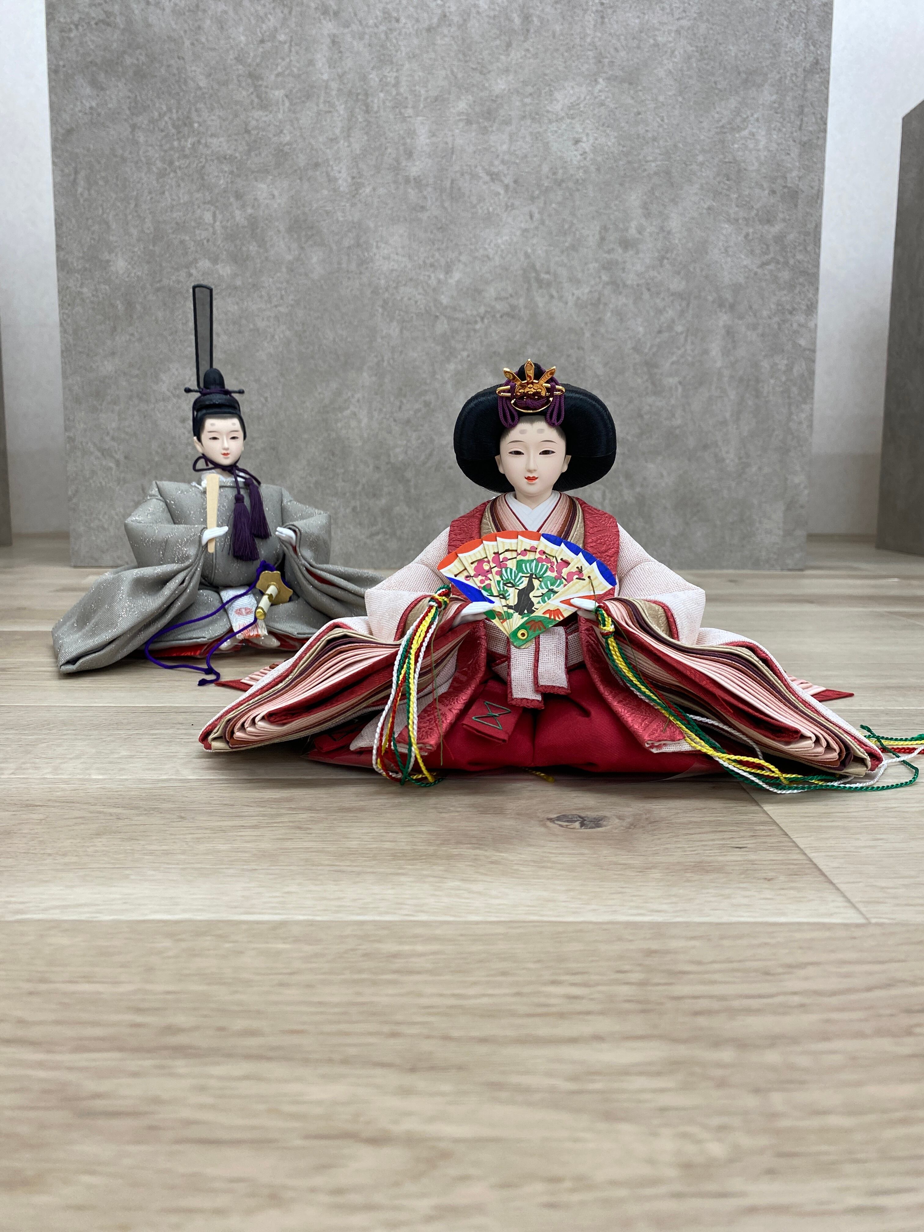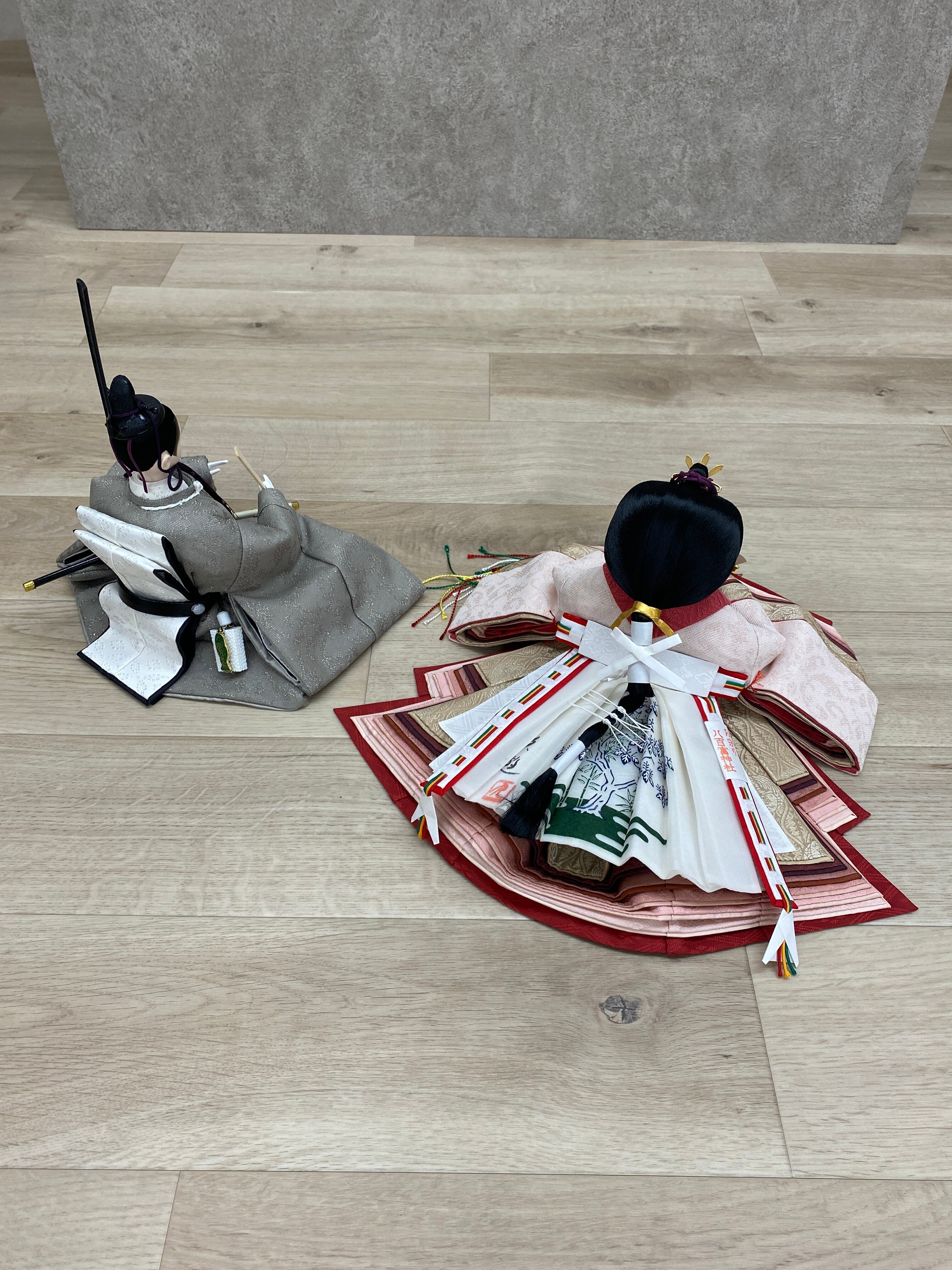 人形は人気の女流作家 清水久遊の作品となっています。とても美しい着物の重ねが特徴的で、特にお姫様を真上から眺めた姿は唯一無二の美しさといえます。