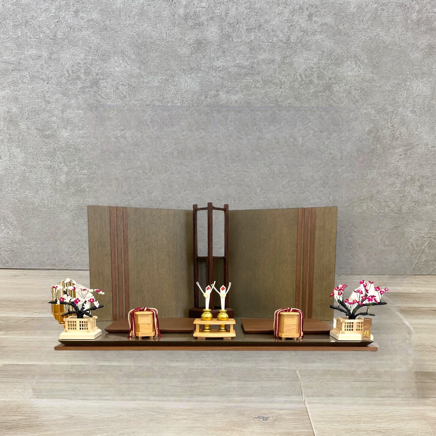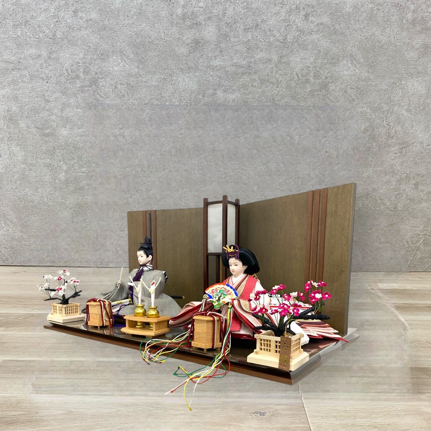 この平飾は、懐かしさと温かみを感じさせる「いとしえ」をテーマにした雛人形です。伝統的なデザインに現代的なセンスを加えた美しい一品で、見る人の心を和ませます。