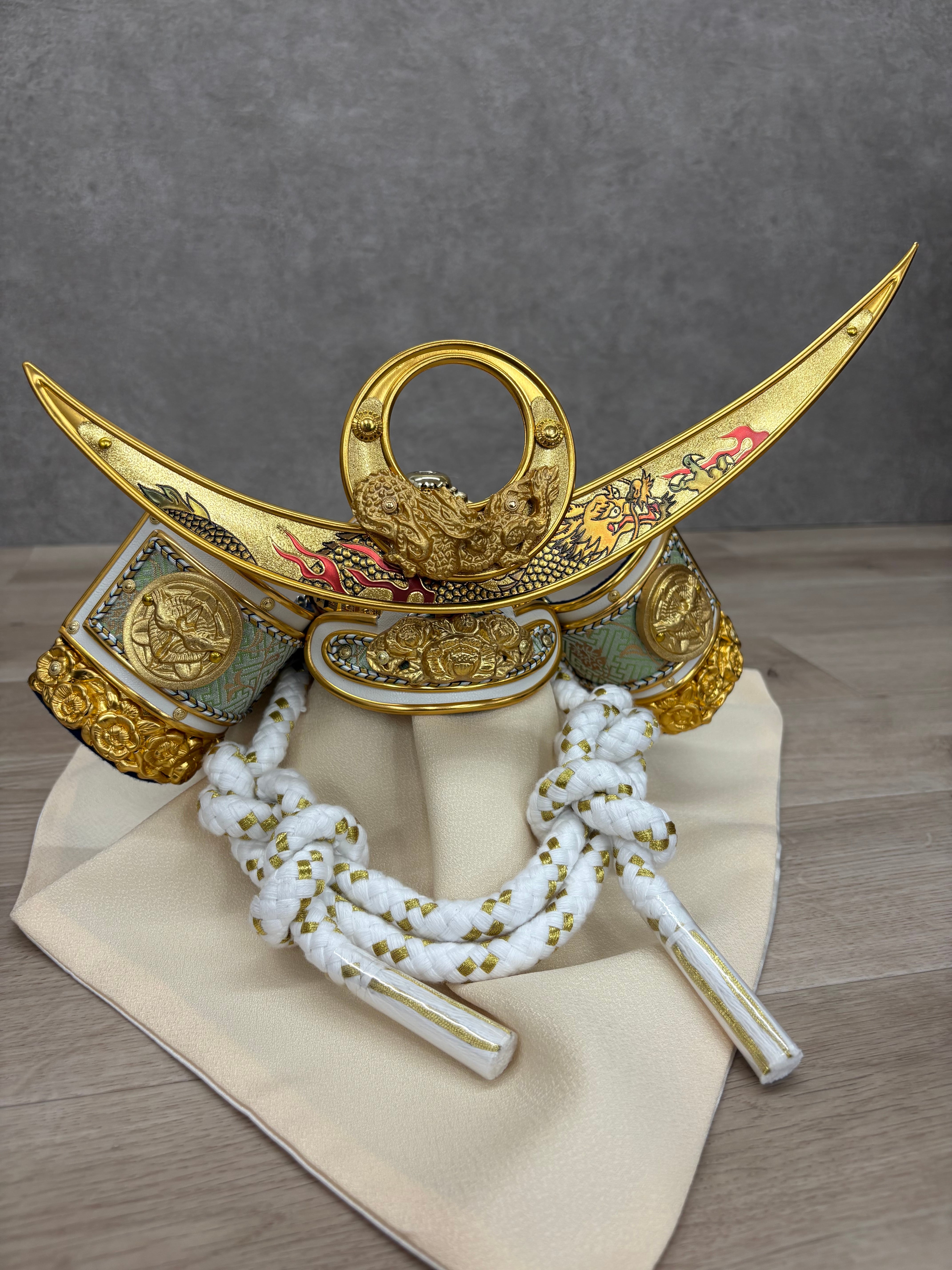 デザインとしては人気武将 上杉謙信の兜となります。こちらの兜は白を基調とした