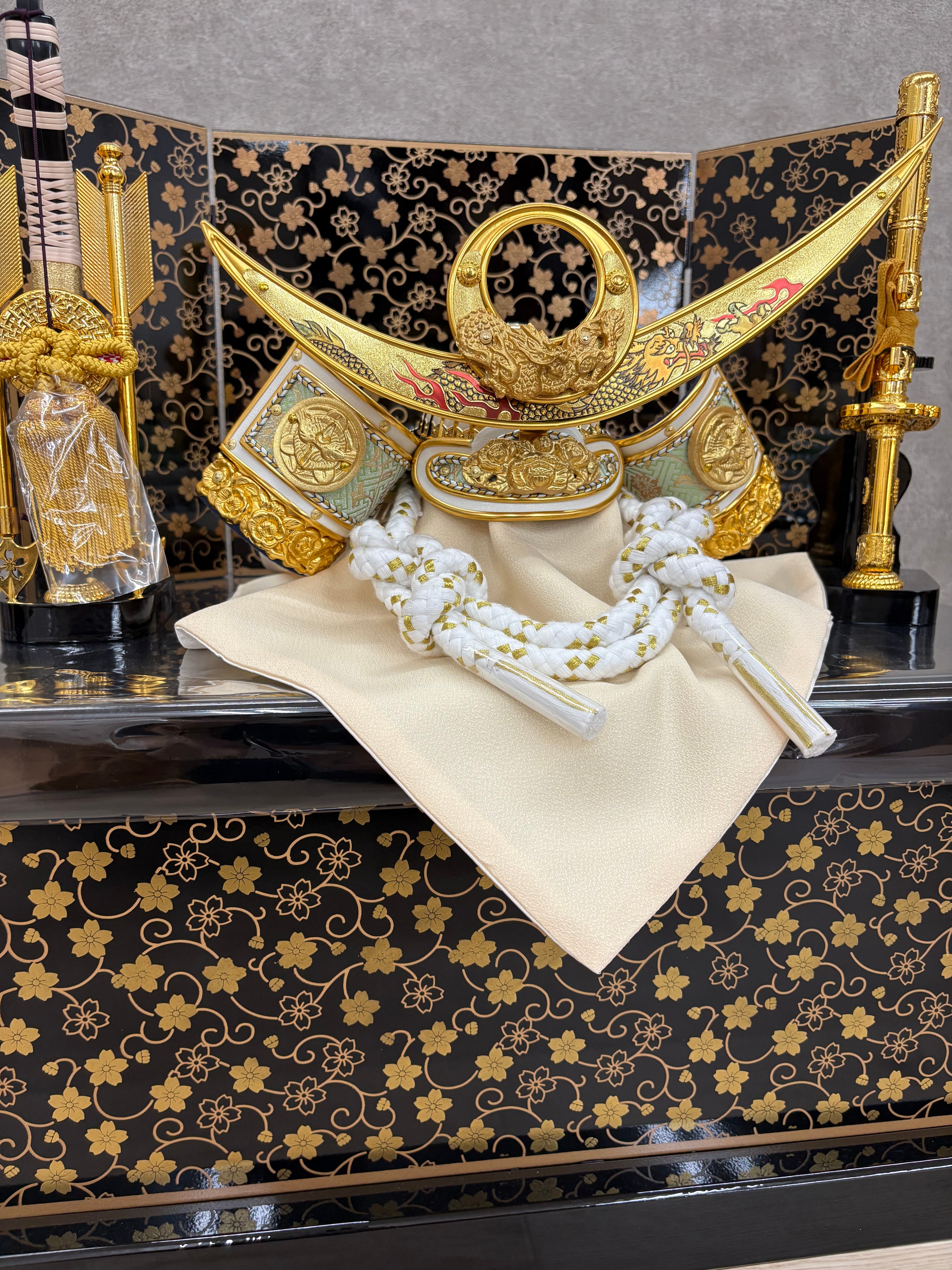 K10 上杉謙信兜 桜蒔絵収納飾