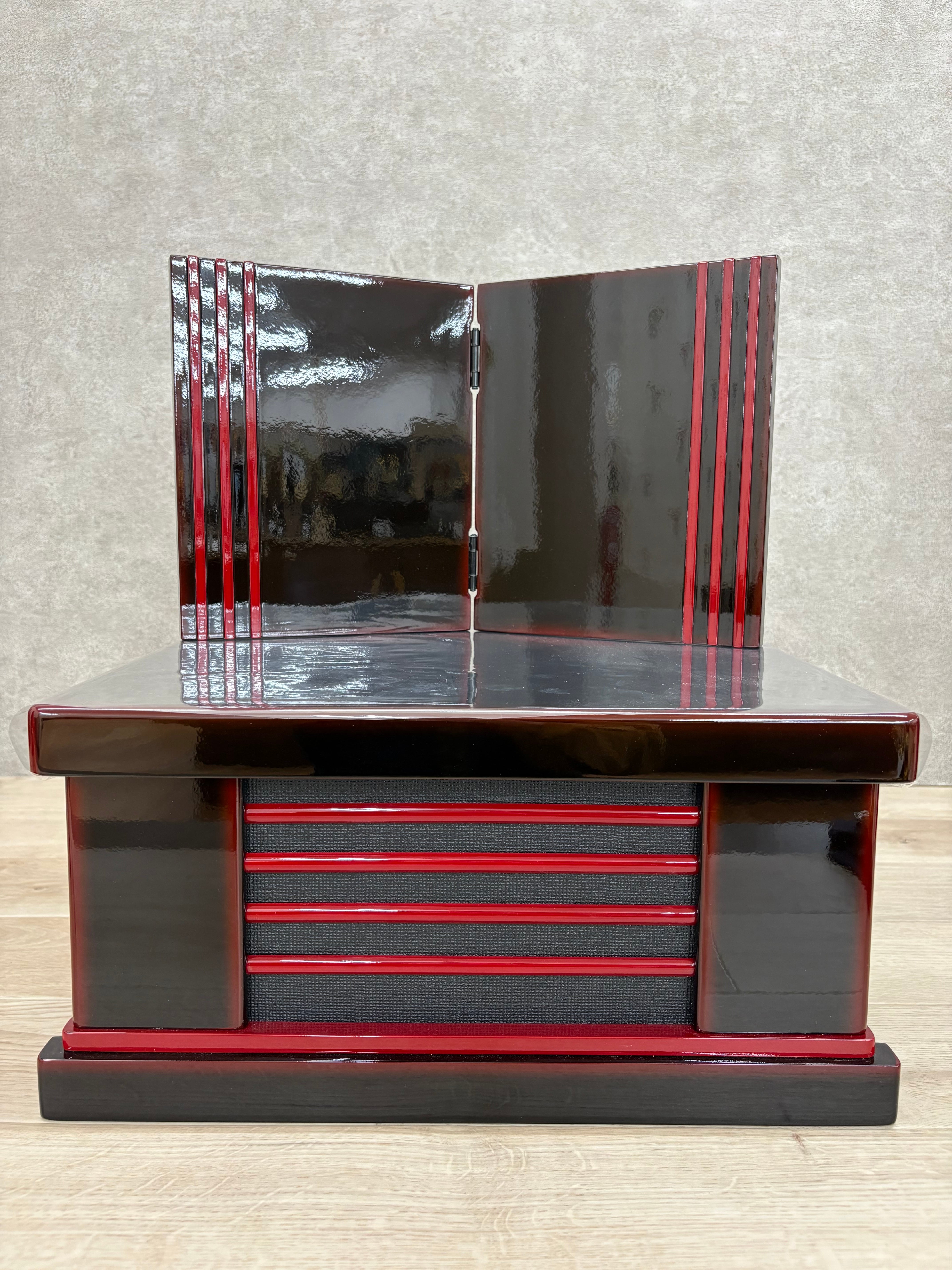 下の飾り箱の中に兜などを片付ける事が出来ます。