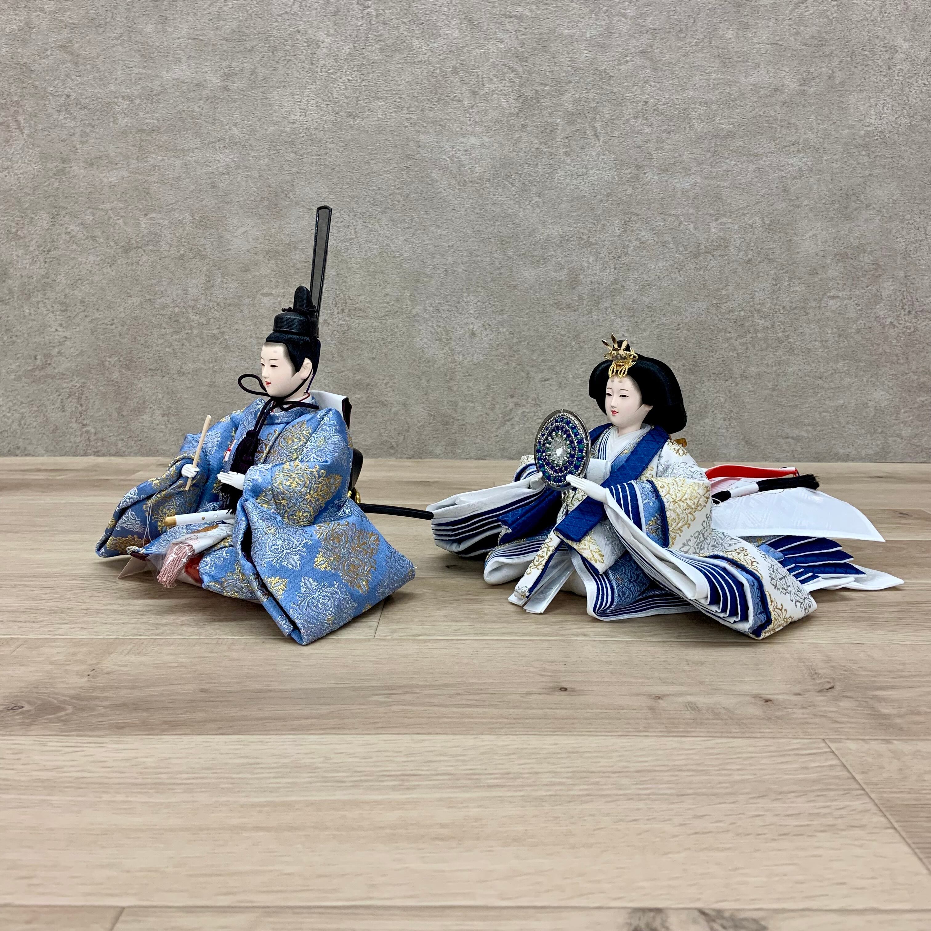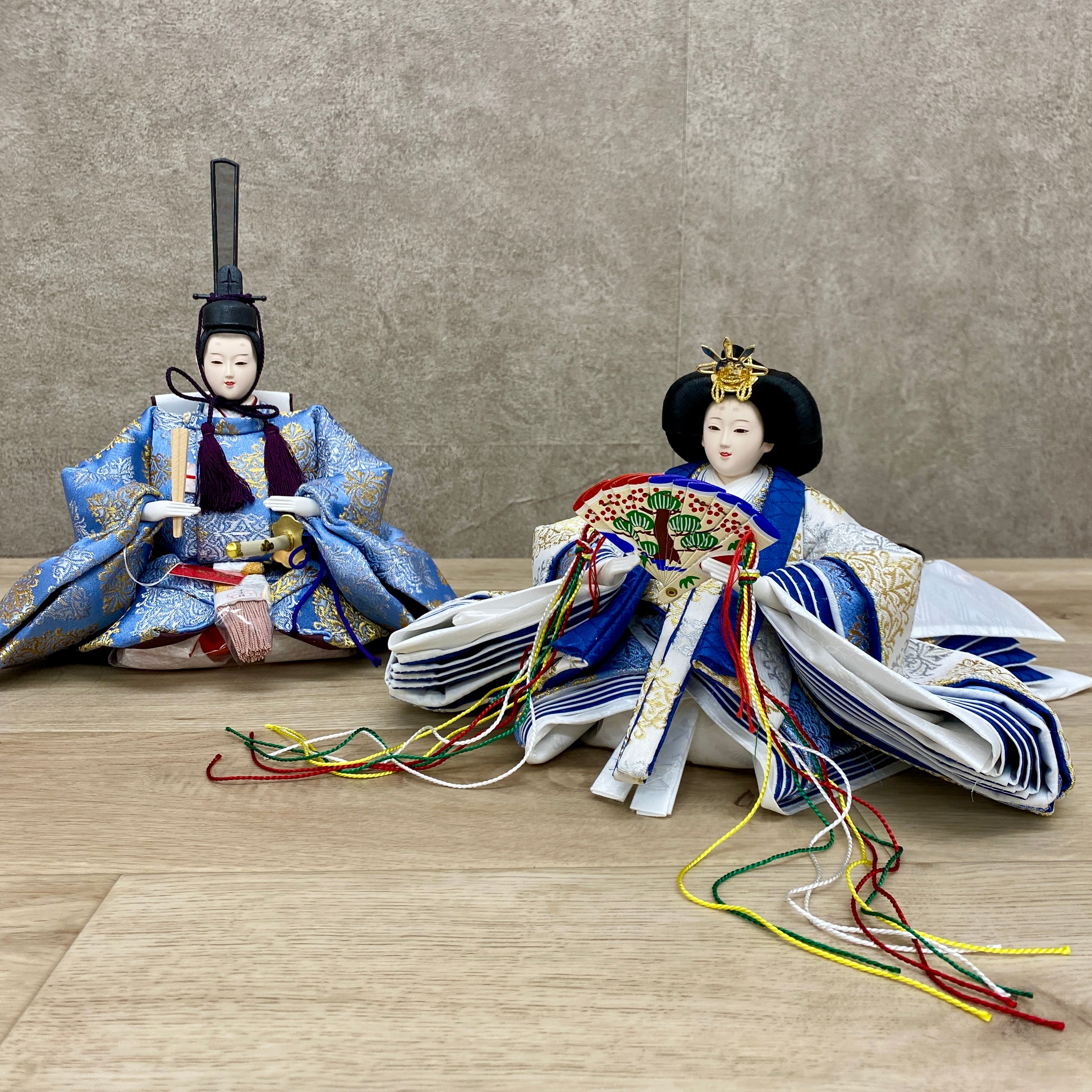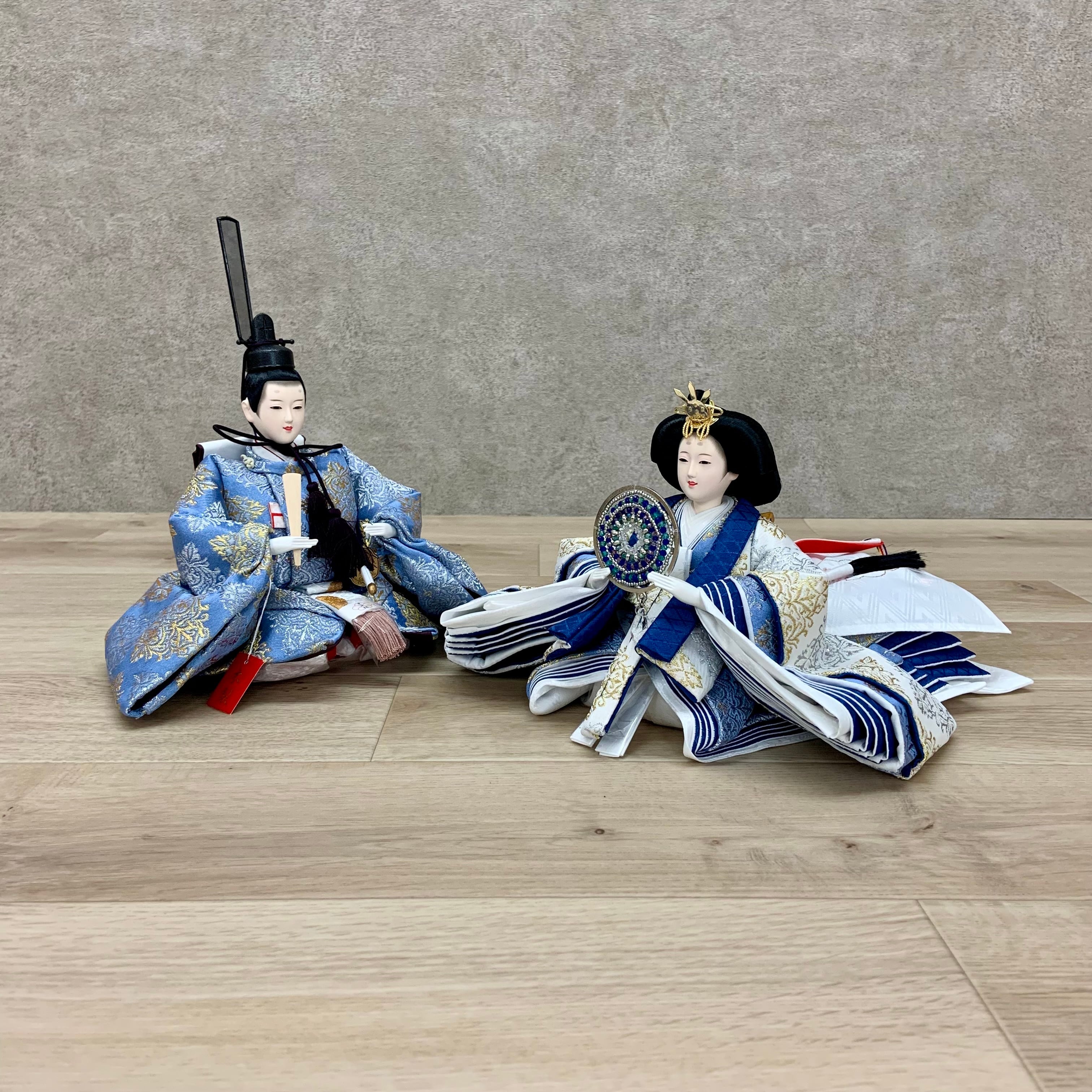 淡いブルーの優しい衣装に身を包んだお雛様達。