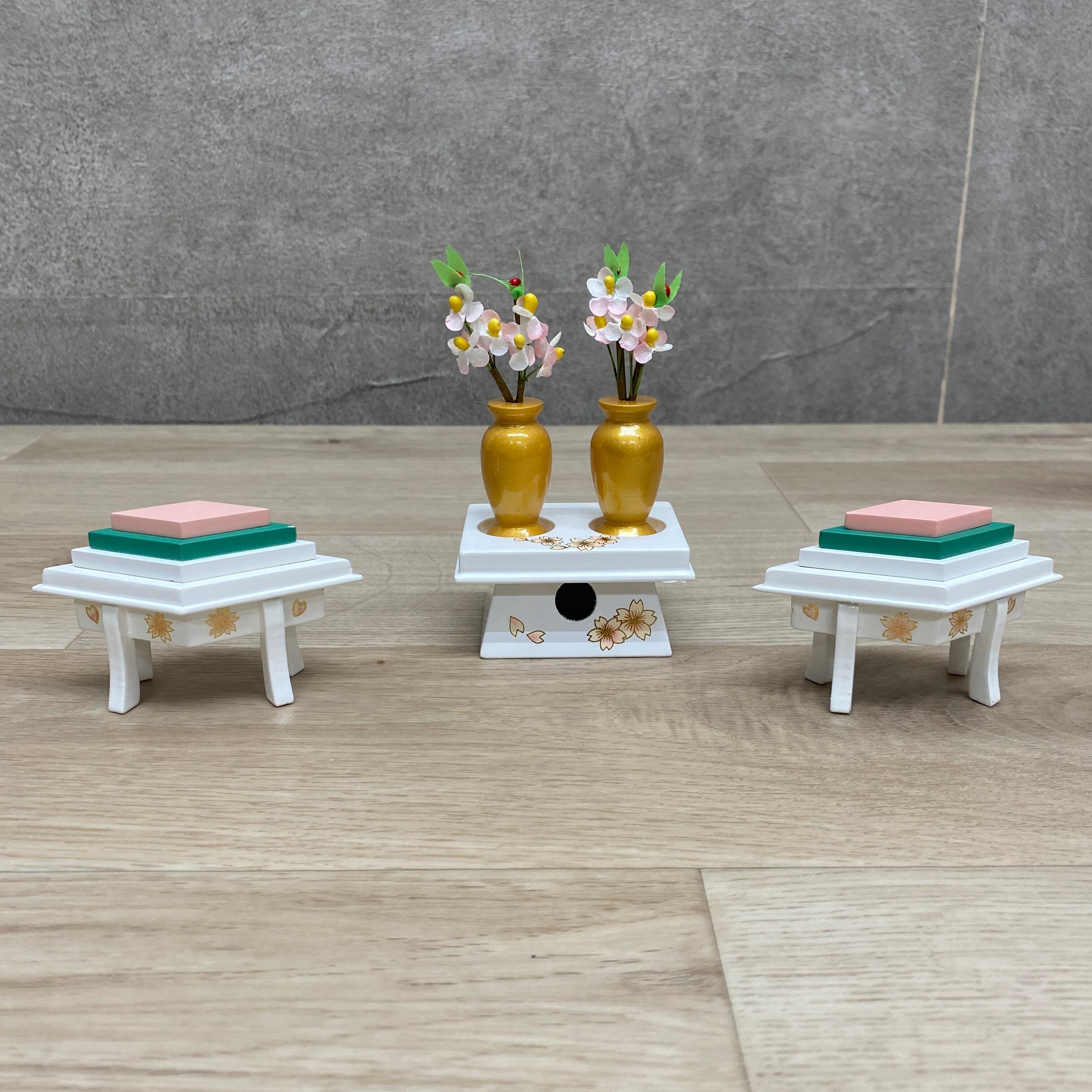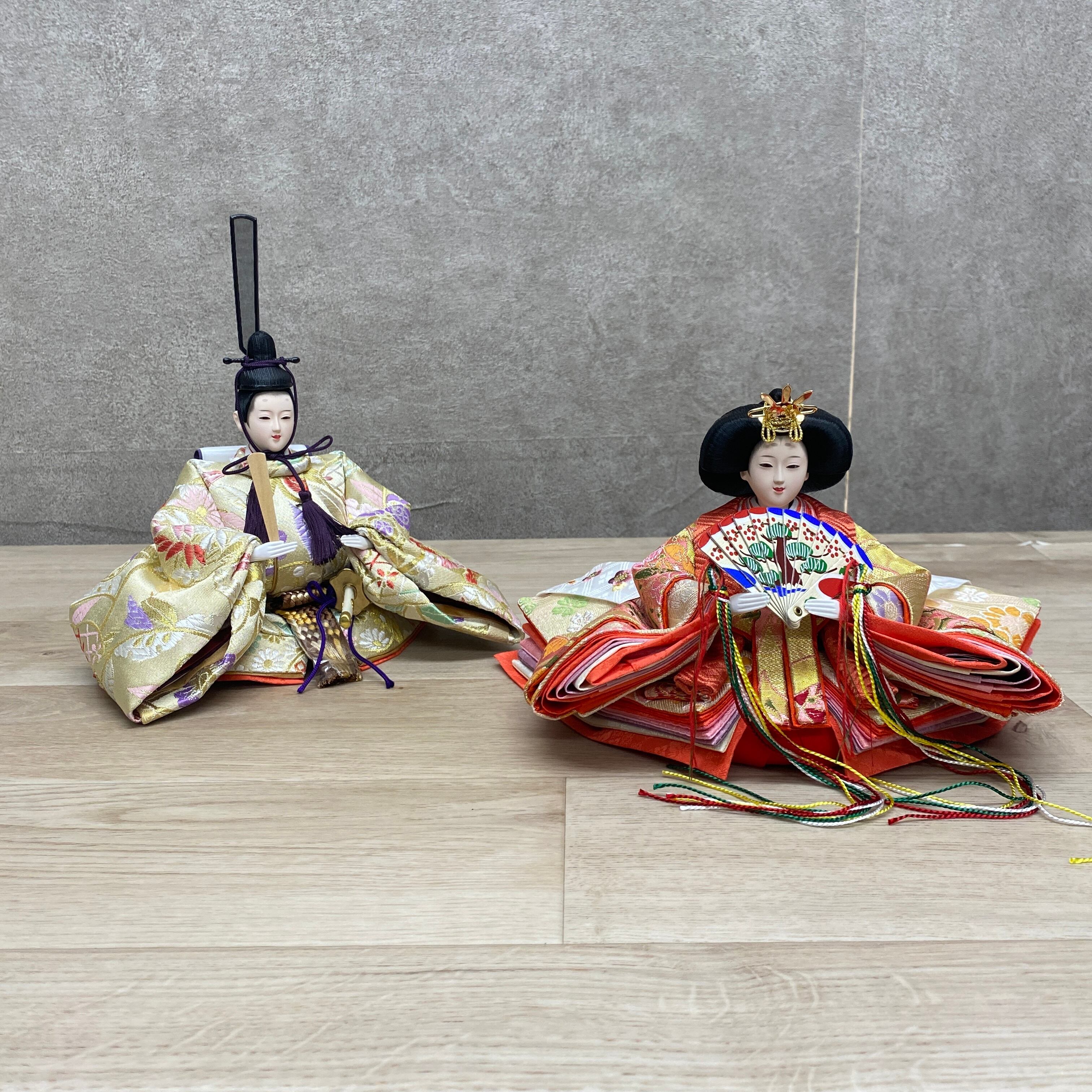 こちらの収納飾りは、春の訪れを感じさせる白ピンクの色合いが美しい親王飾りです。