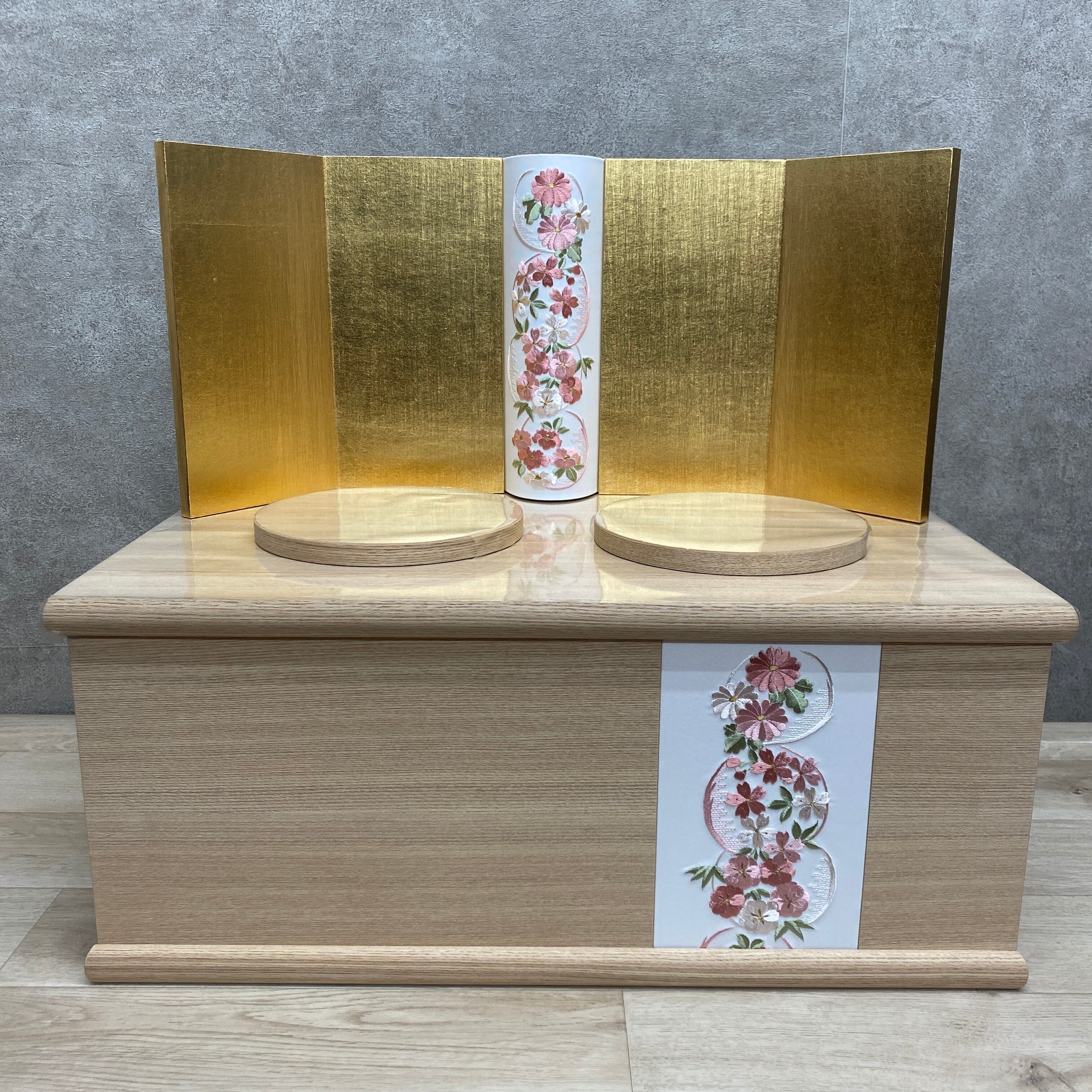 こちらの収納飾りは、桜を題材にした華やかな親王飾りです。
