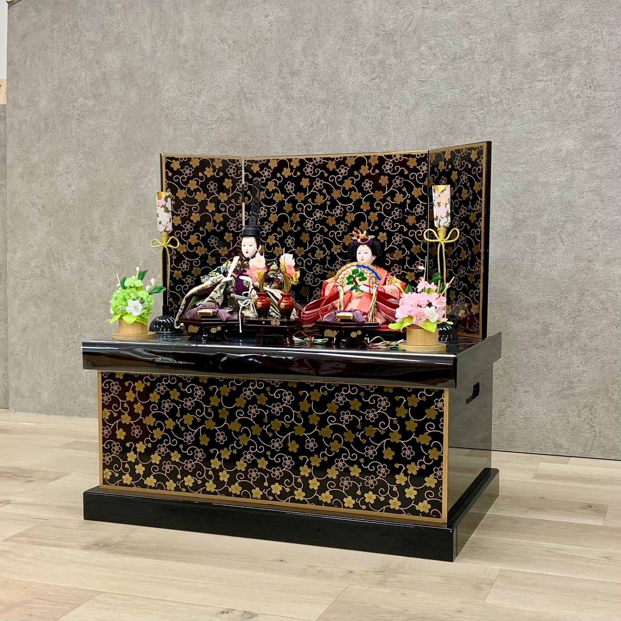 黒塗りに大胆に桜模様が描かれた飾り台は