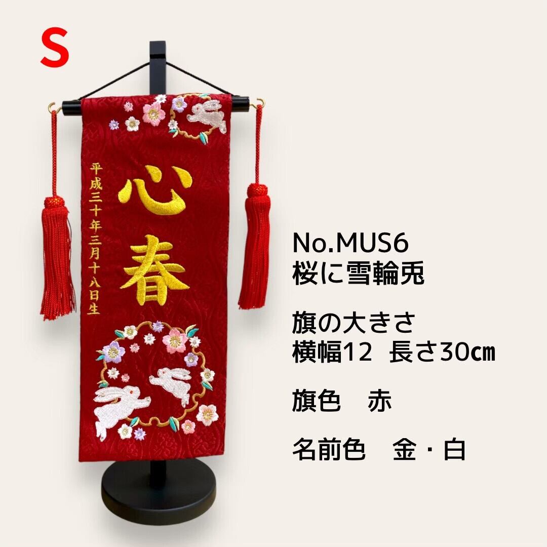 名前旗 桜に雪輪うさぎ 赤 小サイズ MUS6