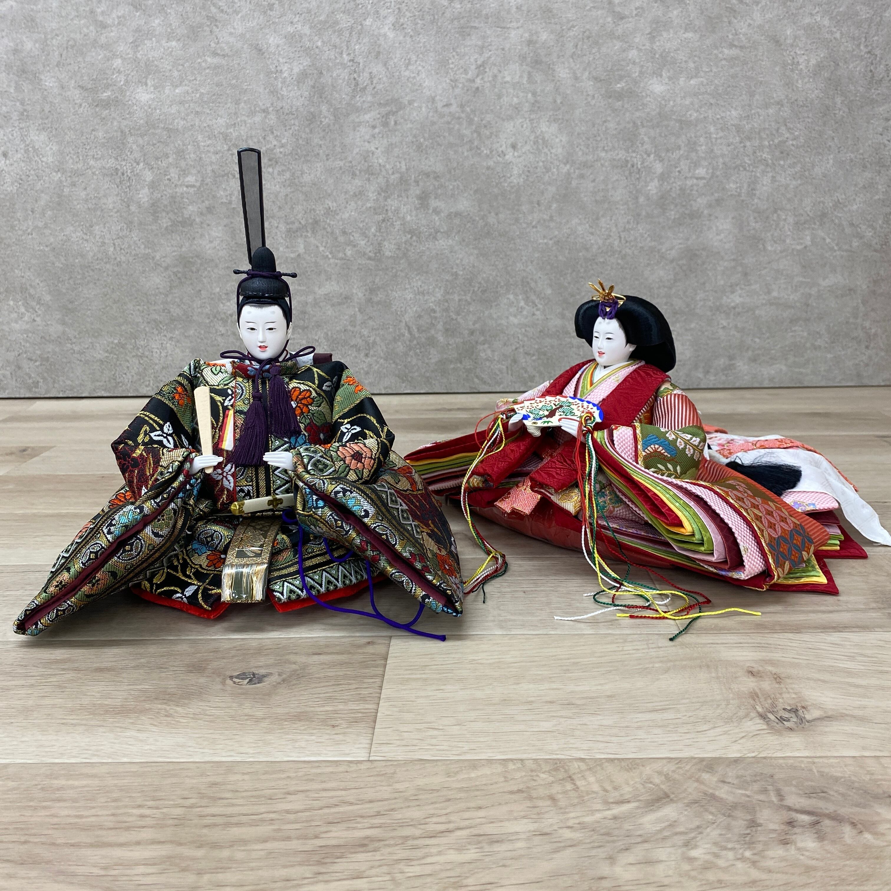 留袖をイメージして豪華に作られた着物のお殿様とお姫様。飾り台の色は人気の茶色ベース。